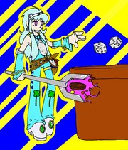 "Cursed and loved by all across Gaera, Lady Luck has the most sporadic worship base of all deities. She is all about balance; anytime someone loses somewhere, someone else wins, eventually. Where, who, and how much depends on her mood, which can vary to extremes for no comprehensible reason. She often claims to be the illegitimate offspring of Nakibe and Istaria (Shamayu), then will deny it later. Sometimes she will appear human, to randomly cast and withdraw fortune to those around her. While human she will often refer to herself as Aces and can be identified by her staff, which is covered in number that will change every time you look away, and her Diablolic Dice; two non-semetrical dice that can deliver both horror and wonder upon her intended target."