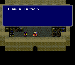 There are many NPCs in the early Final Fantasy games which annnounce: "I am a farmer." It would seem that many outside of Zany Video Game Quotes have found this amusing, leading to it becoming a small time catchphrase. Farmers themselves have also found themselves in a small spotlight of fame, including ranchers, also known as meat farmers.